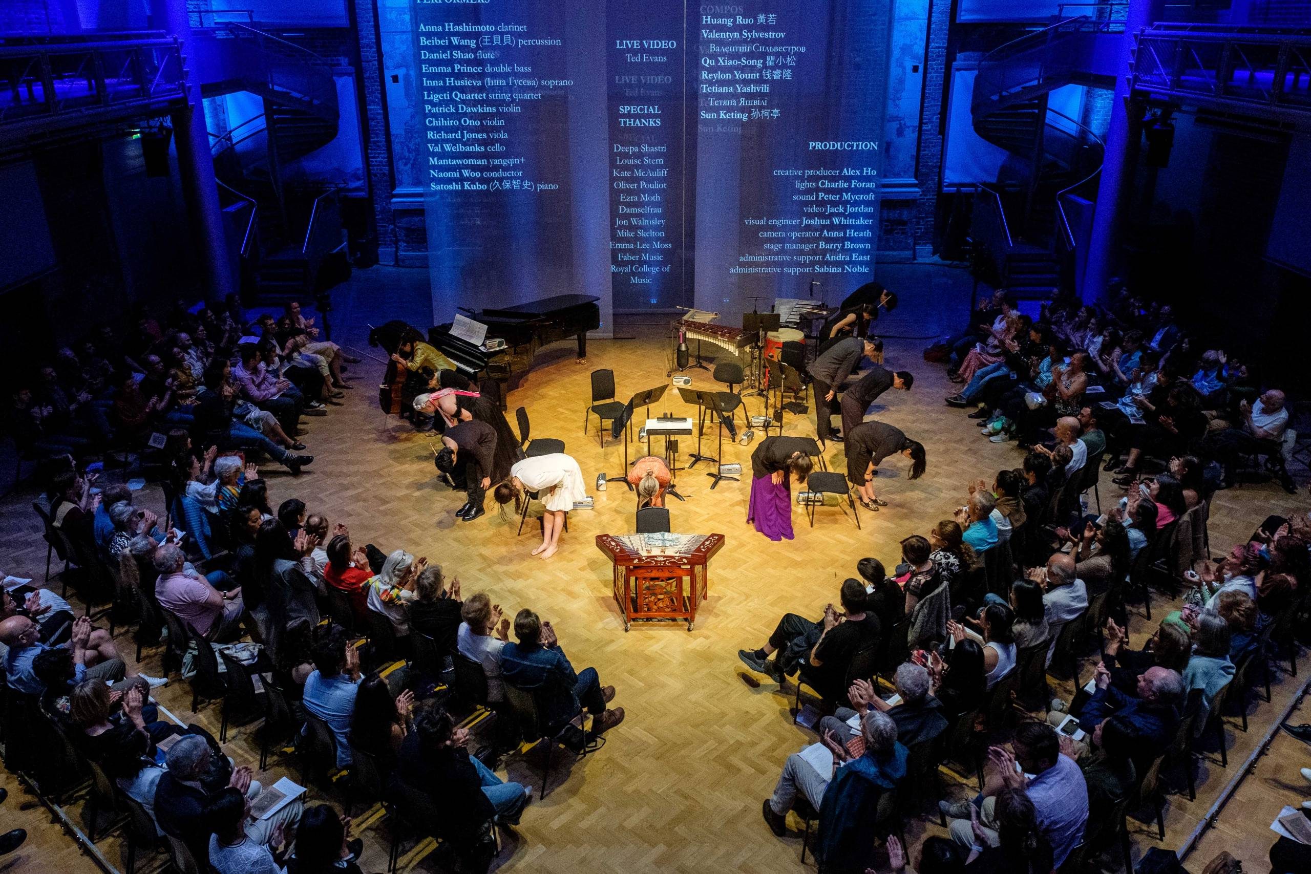 The performances featured nine musical compositions from four continents categorised into two distinct atmospheres: woodland and ocean. Evocative sounds of ice and plastic were paired with the haunting echoes of vanishing whale songs, culminating in a striking performance art piece from Echo.