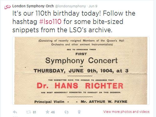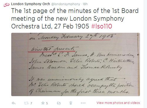 Yesterday on 9 June 2014, the LSO celebrated 110 years since its first concert on 9 June 1904, and we marked the occasion with a series of Tweets of interesting facts about the LSO, dug out of the less explored corners of our archive.